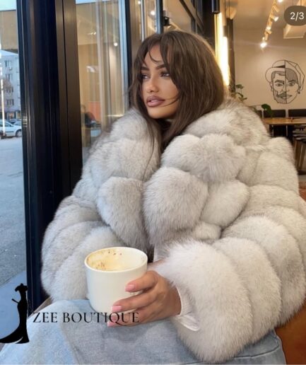 All white shoet jacket with natural fox fur