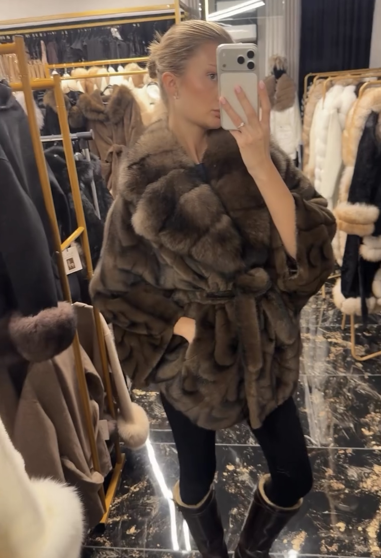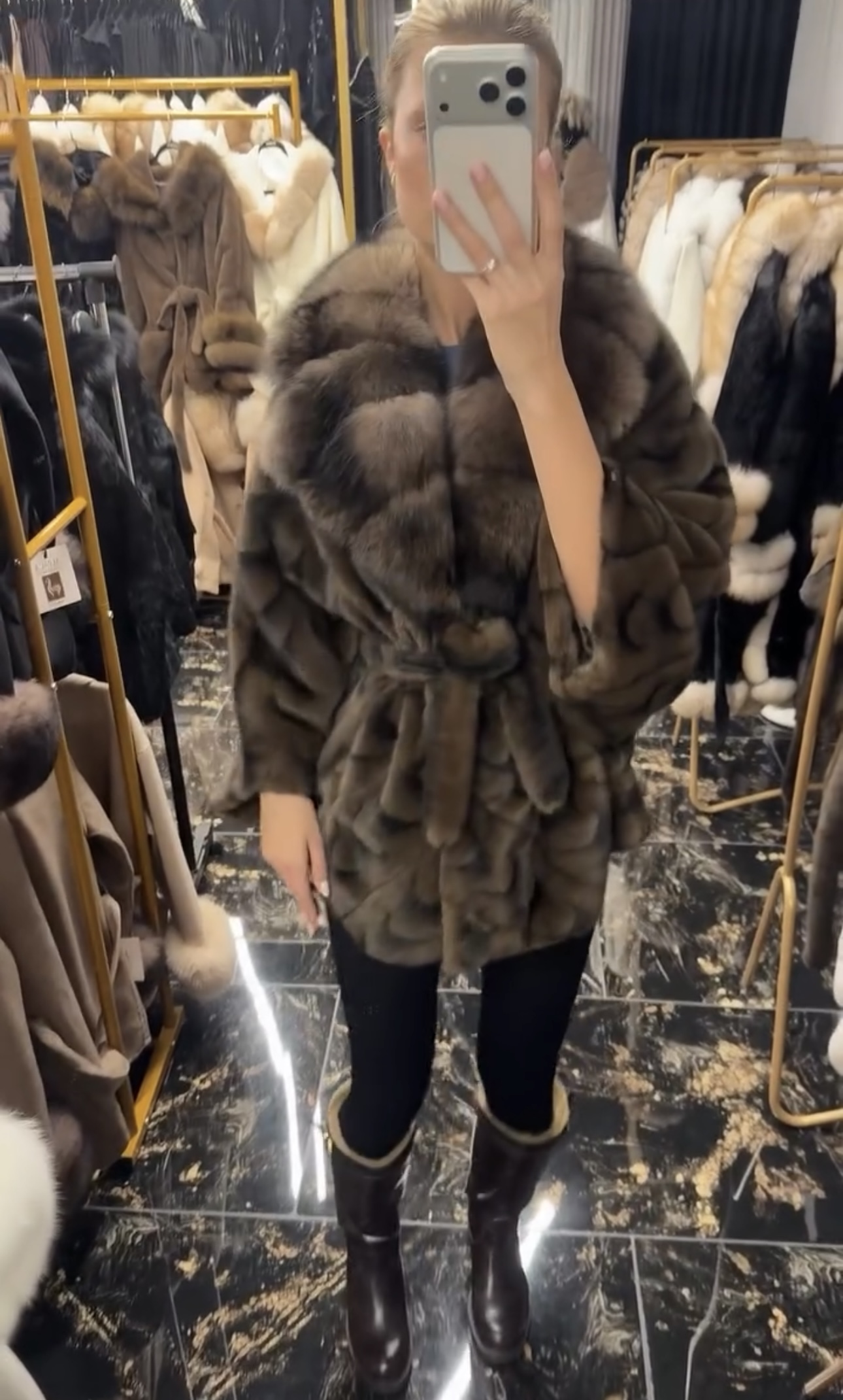 Elevate your look with our stunning poncho adorned with fox fur accents. Luxurious and Sophisticated, this piece requires special care to preserve its beauty. Reach out to us for sizing guidance and embrace the ultimate in chic glamour